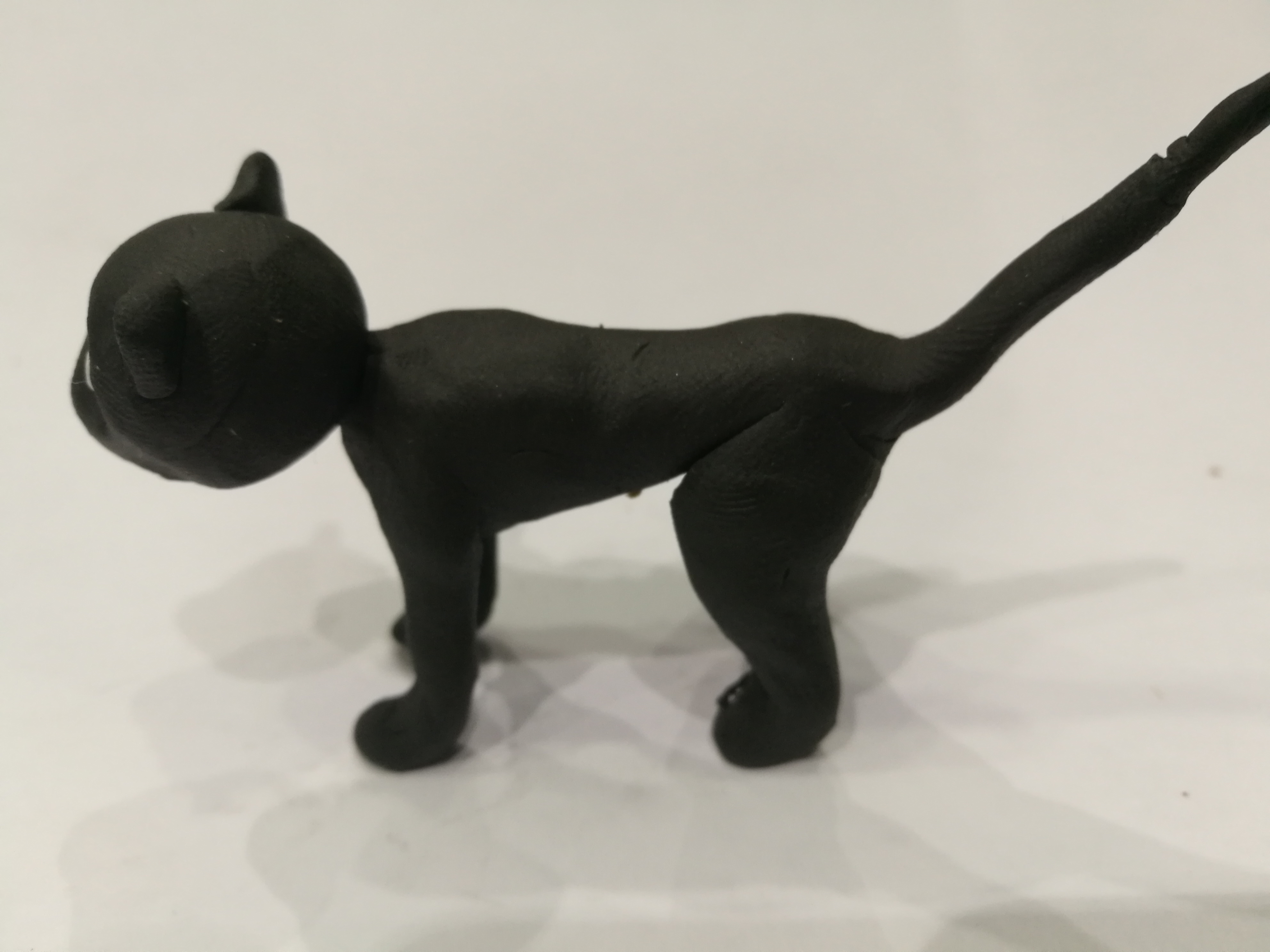 Ces chats sont très petits, pour être en rapport avec la taille des décors. C’est pourquoi, ils sont fabriqués en pâte à modeler.